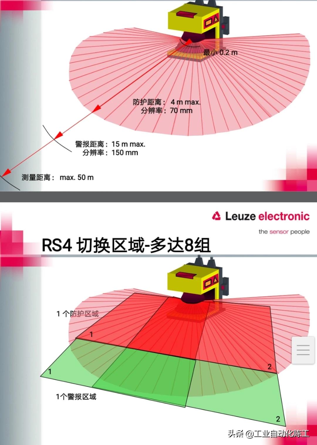你好,很高兴回答你的问题。安全光栅主要是通过在光栅所扫描的区域划定一定的范围,进行预警,报警,正常运行的安全传感器。以工业LEUZE品牌为例。